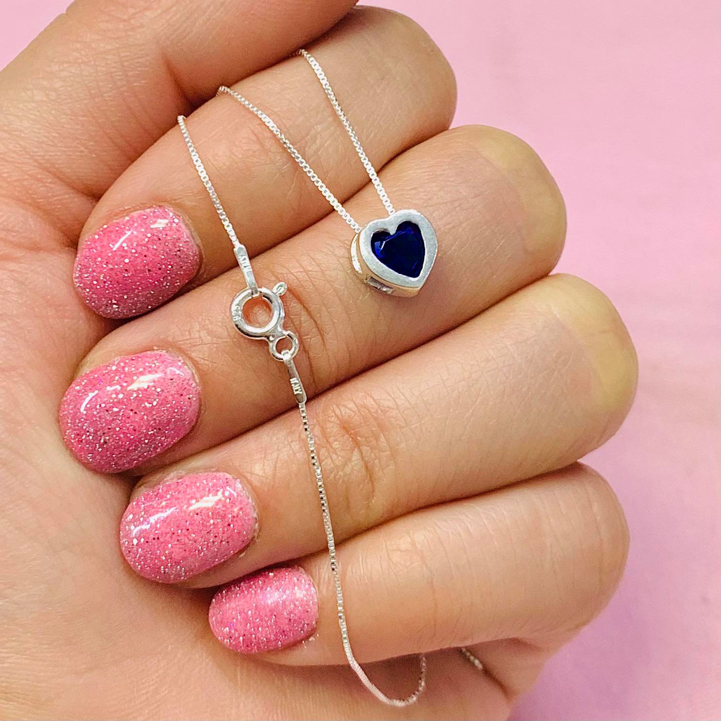 Conjunto Cadena Veneziana fina con Dije Susanito Corazon Azul 8mm de Plata 925