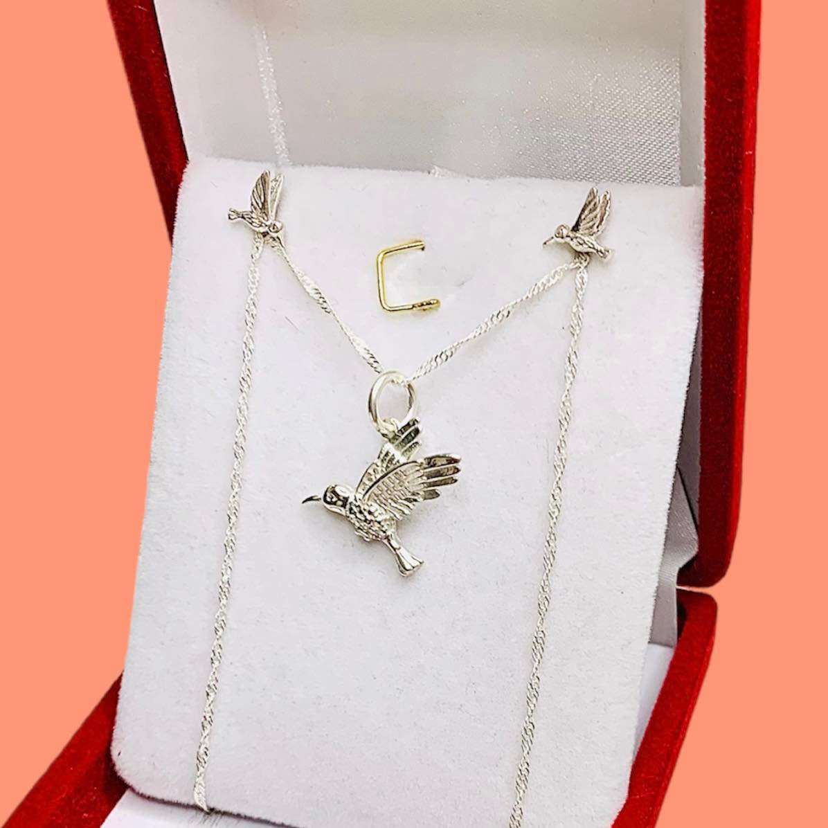 Conjunto Cadena Singapur con dije y Aros Colibri de Plata 925