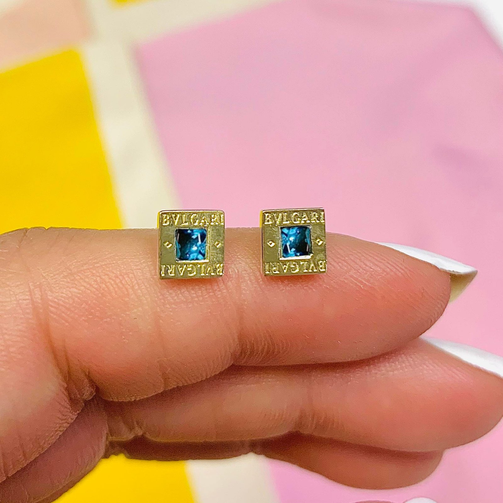 Aros BVL macizo Cuadrado mini celeste de Plata y Oro