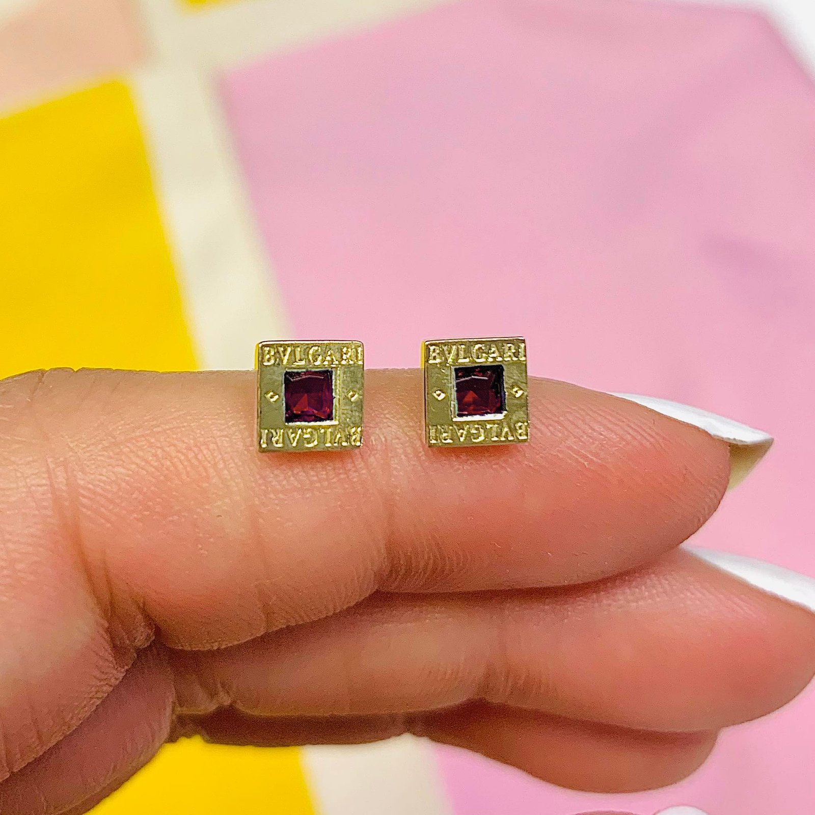 Aros BVL macizo Cuadrado mini rojo de Plata y Oro