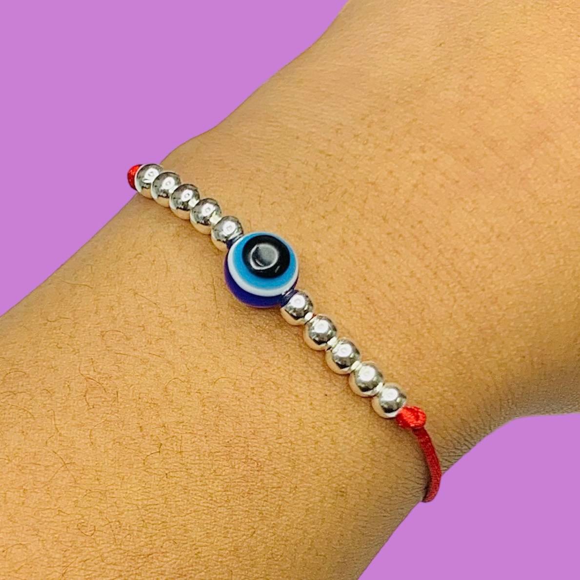 Pulsera Hilo Rojo con Ojito Protector y 5 Bolitas chicas