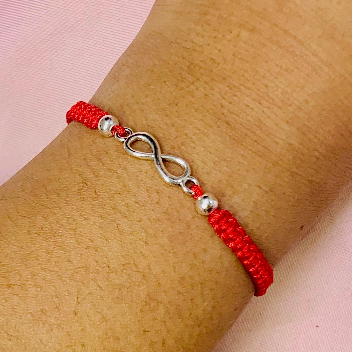 PULSERA HILO ROJO CON INFINITO Y BOLITAS 4mm