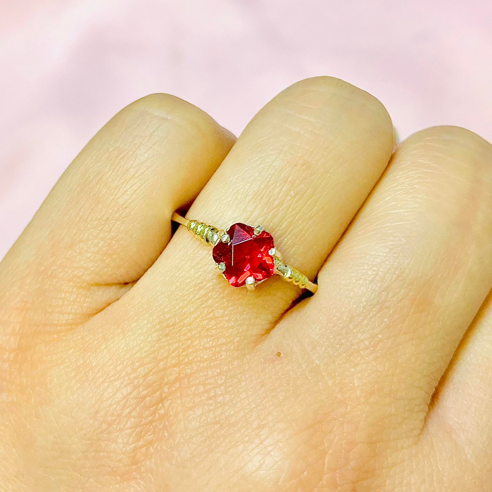 Anillo Flor Primavera con cubic Rojo de Plata y Oro