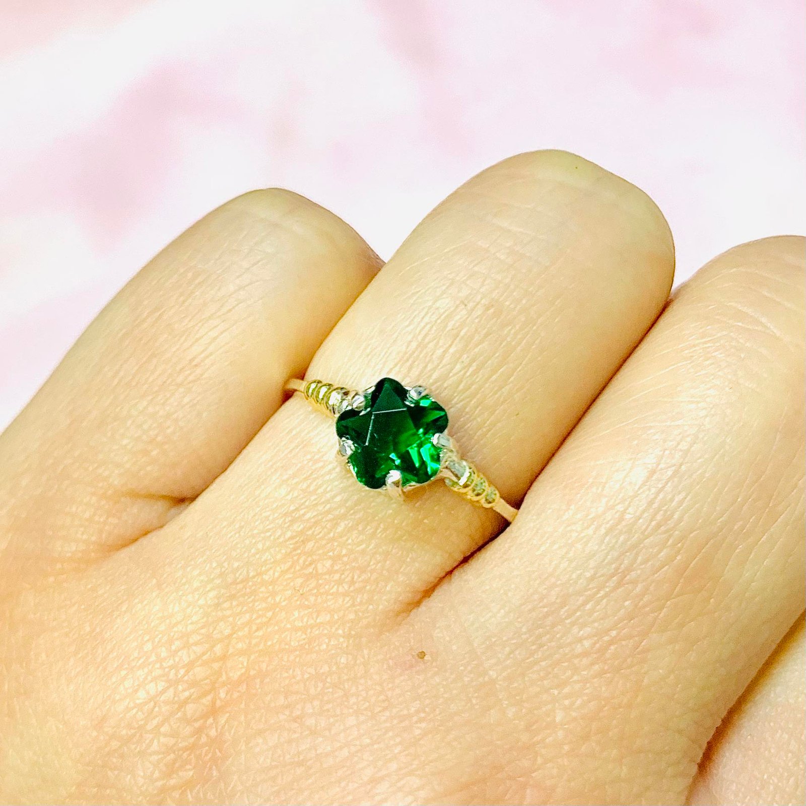 Anillo Flor Primavera con cubic Verde de Plata y Oro