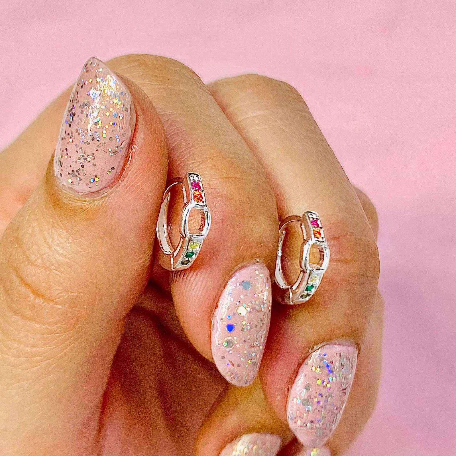 Aros Argolla Clip Italiano diseño cinturon con piedras multicolor Micropave de Plata 925