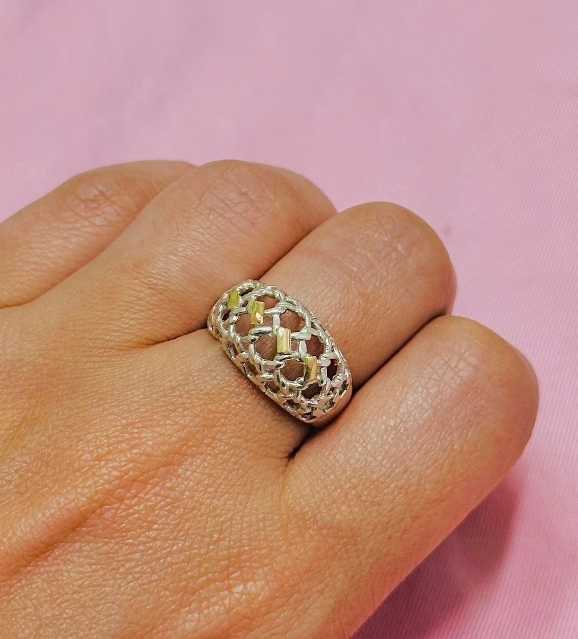 » Anillo Globo Tejido de Plata y Oro