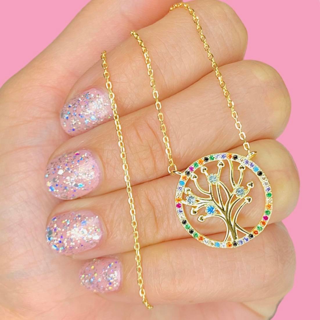 Gargantilla Arbol de la Vida con piedras multicolor micropave Baño de Oro