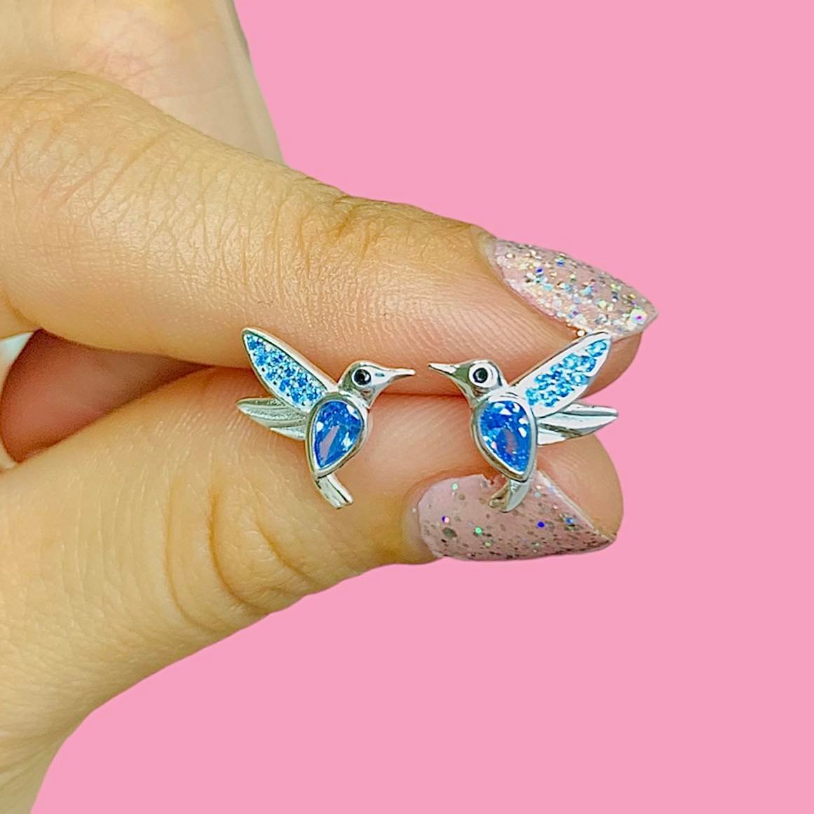 Aros Colibri con ojito Cubic gota Aguamarina de Plata 925