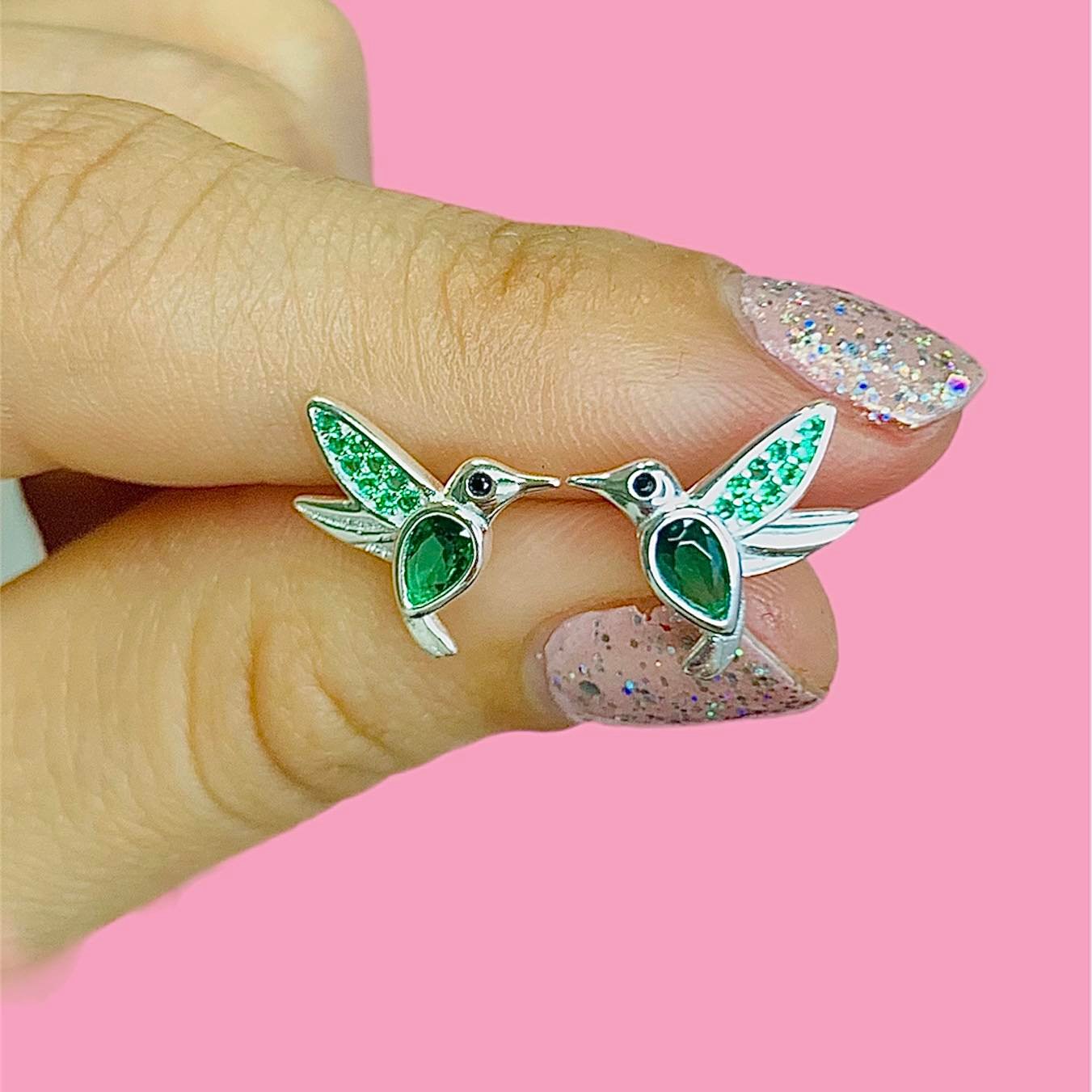Aros Colibri con ojito Cubic gota Verde de Plata 925