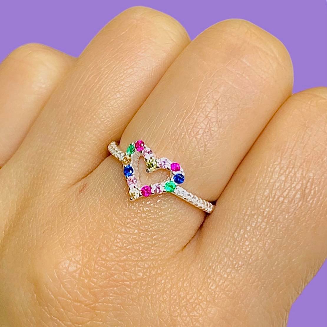 Anillo Corazon Romantico Multicolor de Plata Italiana