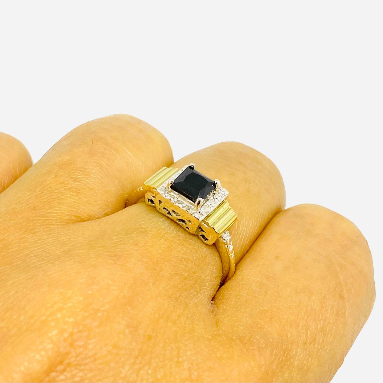 Anillo Solange con cubic Negro Plata y Oro