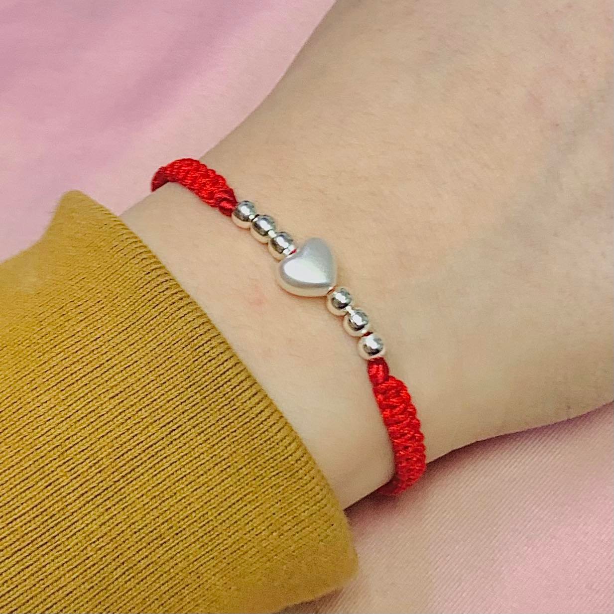 Pulsera Hilo Rojo corazon perlado con Bolitas