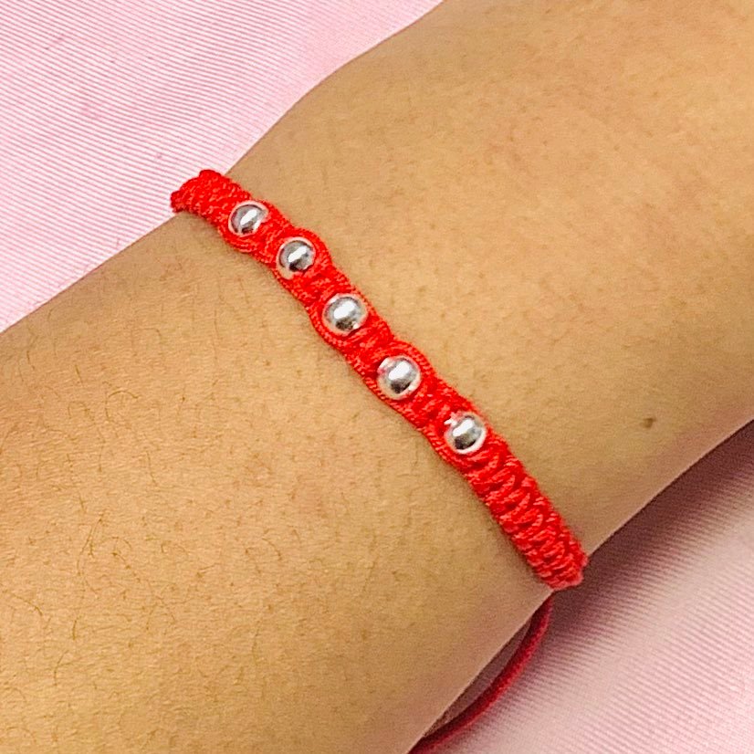 Pulsera Hilo Rojo tejido con 5 Bolitas
