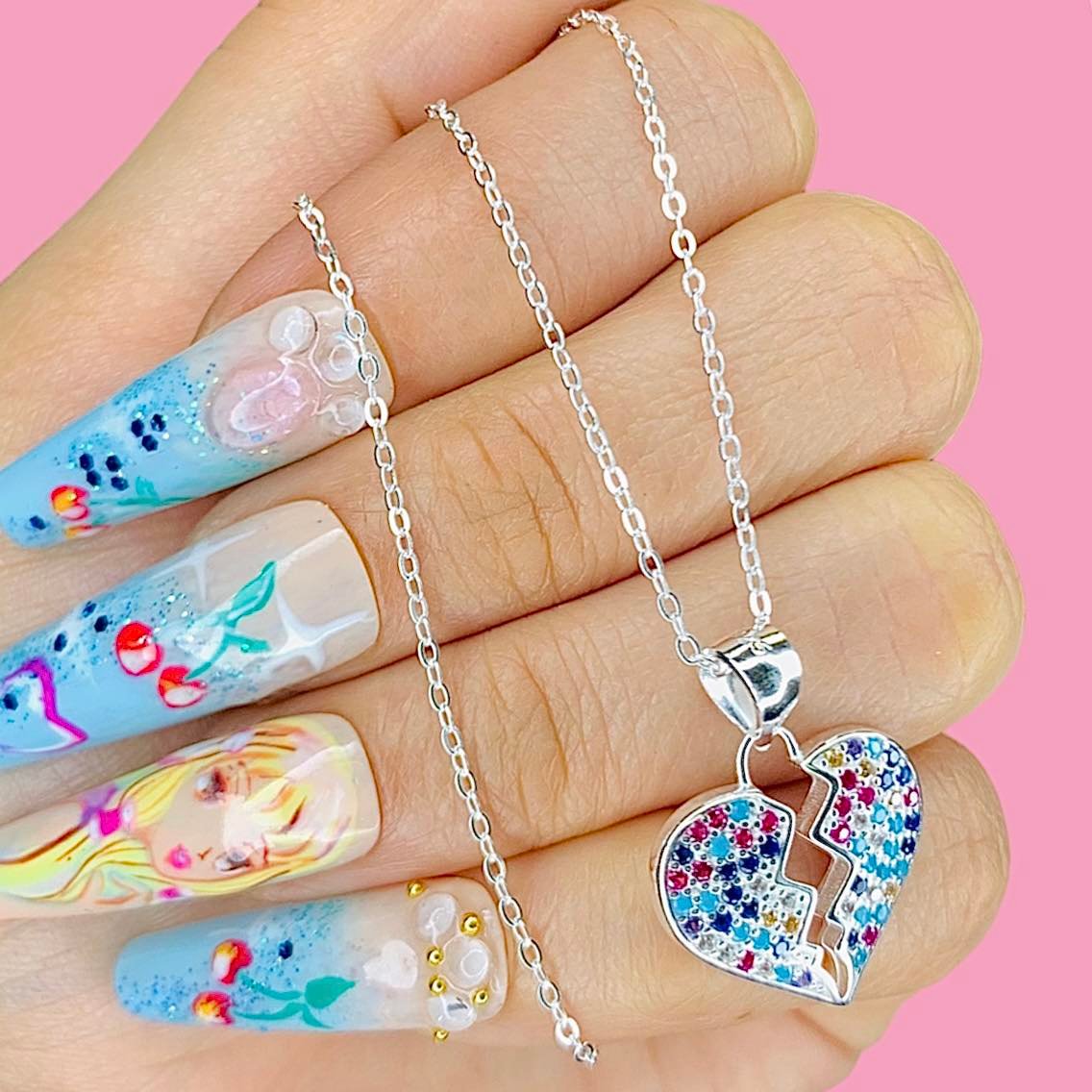 Artículo: kit 055Conjunto rolito espejado con dije corazon desamor multicolor micropave