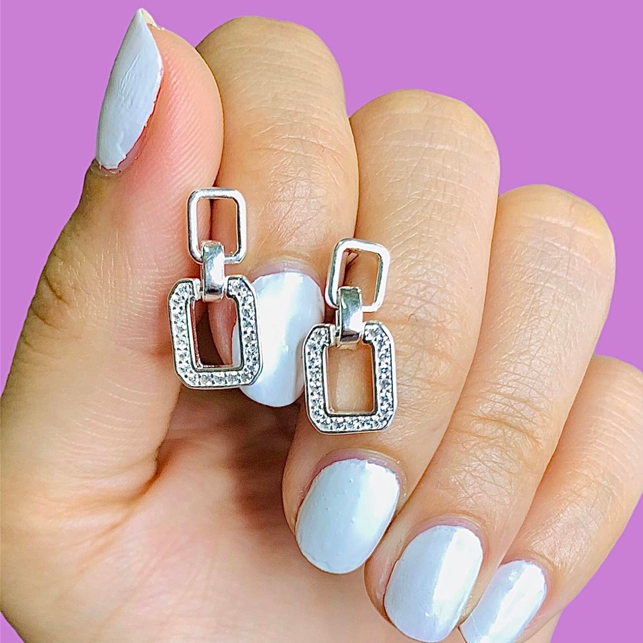 Aros Rectangulo colgante con piedras blancas de Plata 925