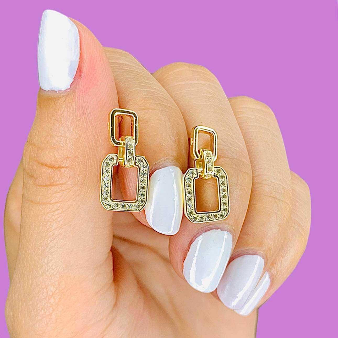 Aros Rectangulo colgante con piedras blancas de Plata 925 y Baño Oro GOLD