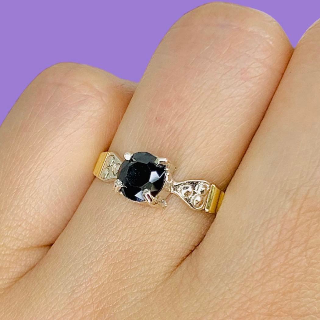 Anillo compromiso con cubic negro con dos flechas de plata y oro