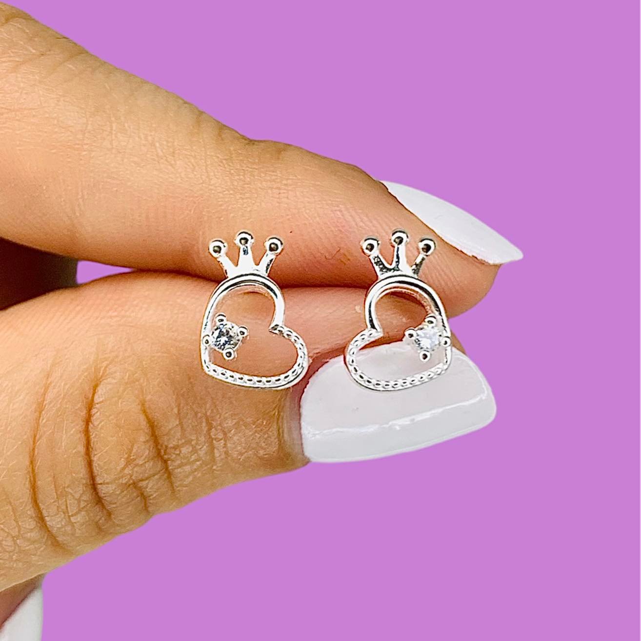 Aros Corazon y coronita con cubic blanco de Plata 925