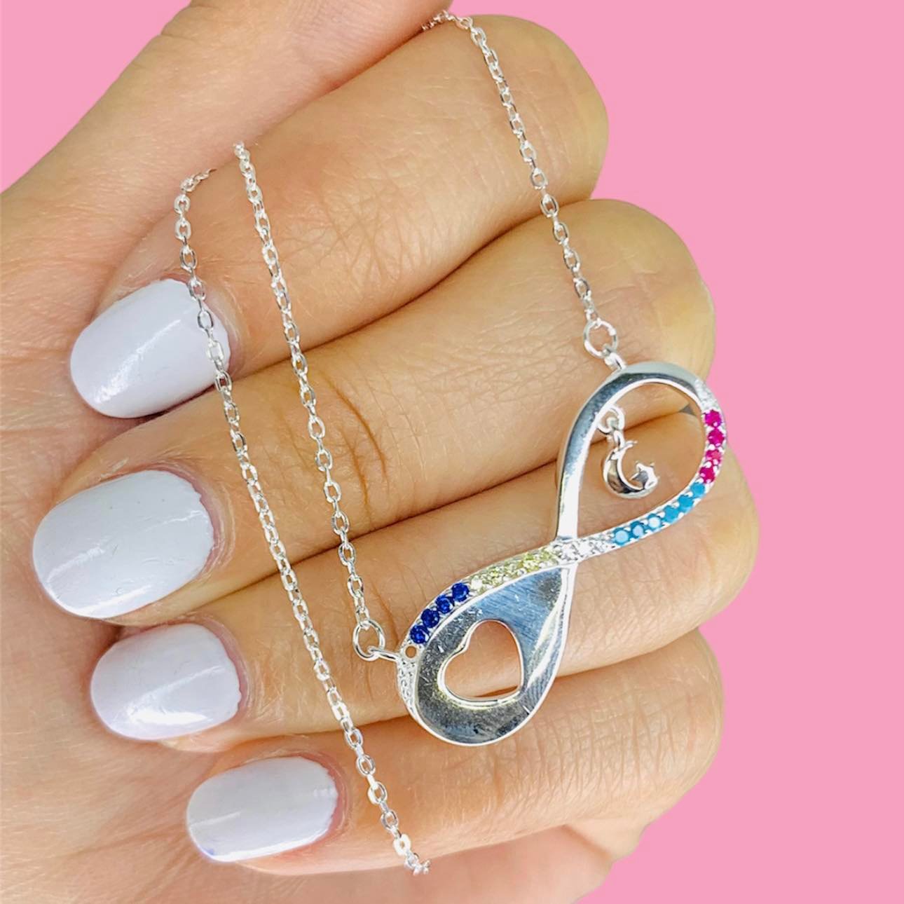 Conjunto rolito espejado dije infinito con piedras multicolor de Plata 925