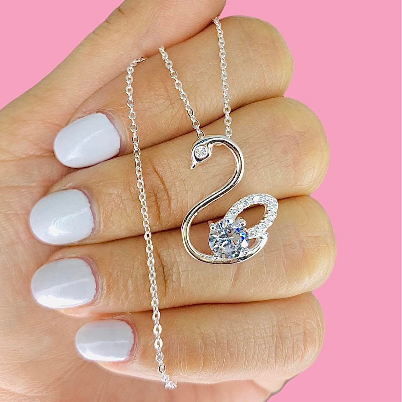 Conjunto rolito espejado Lago de los cisnes con cubic blanco de Plata 925