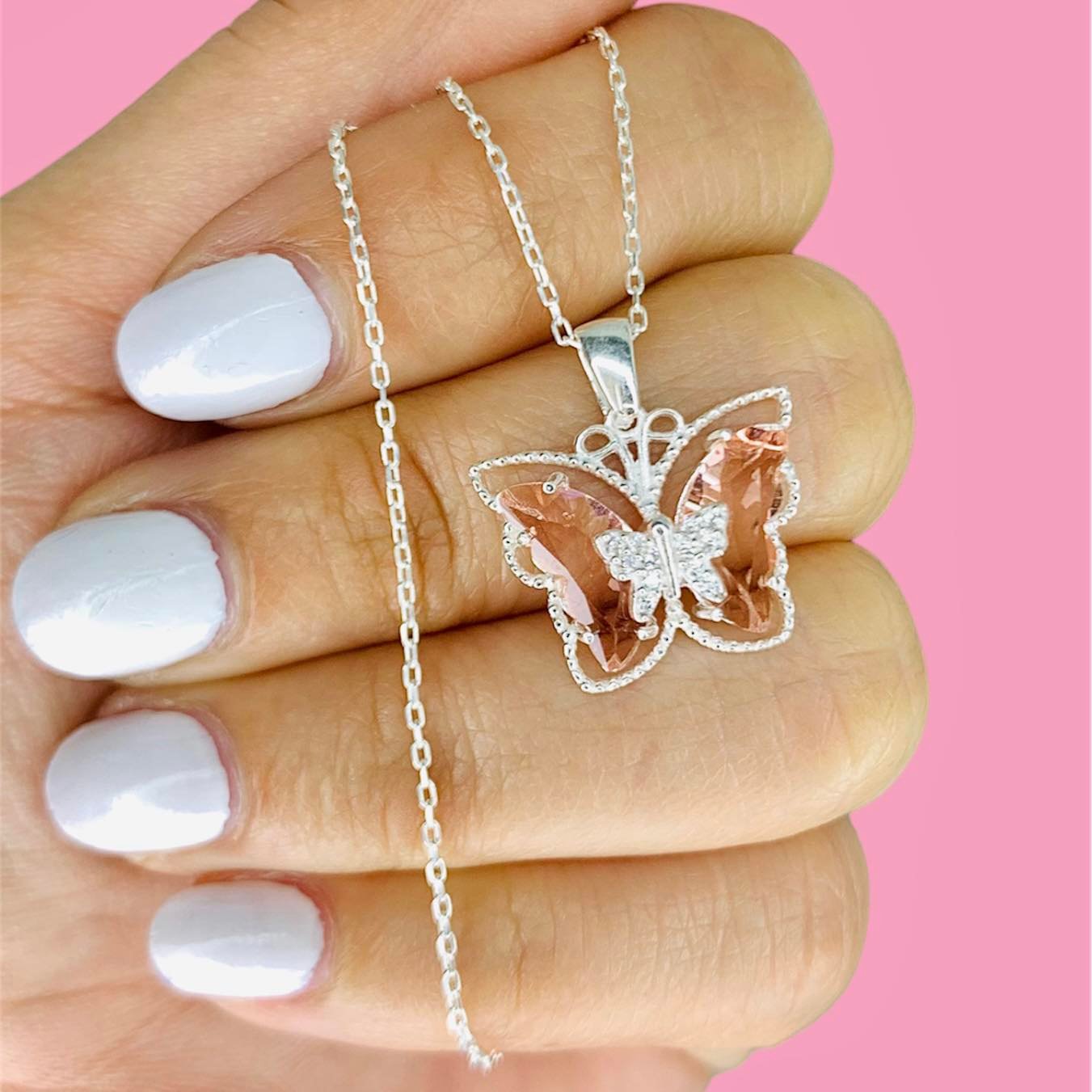 Conjunto rolito espejado Dije Mariposa de sakura de Plata 925
