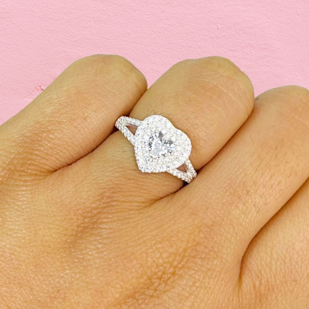 Anillo de compromiso Lujoso cubic corazon blanco de Plata Italiana