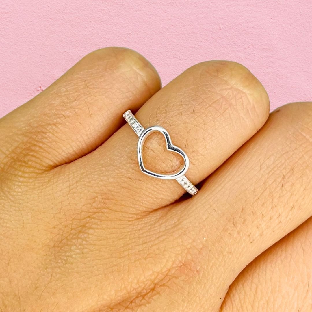 Anillo corazon Calado con piedras blancas micropave de Plata 925