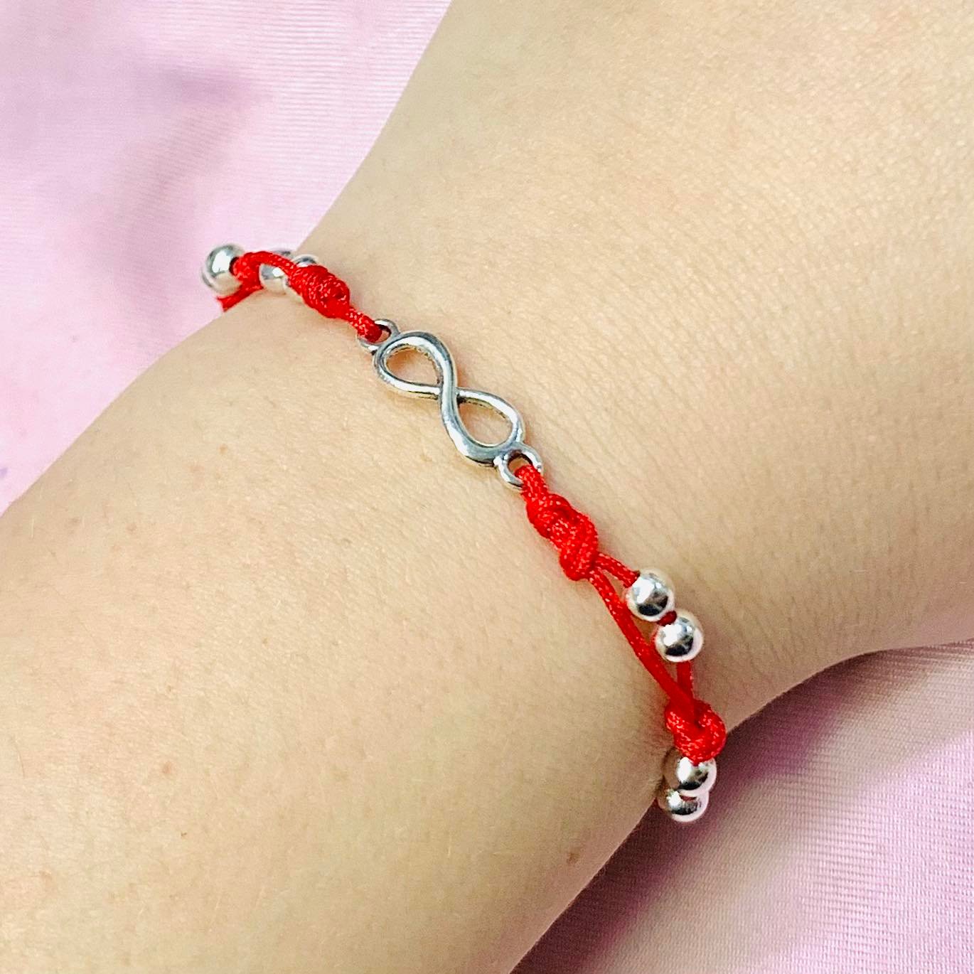 Pulsera Hilo Rojo con dije infinito y bolitas