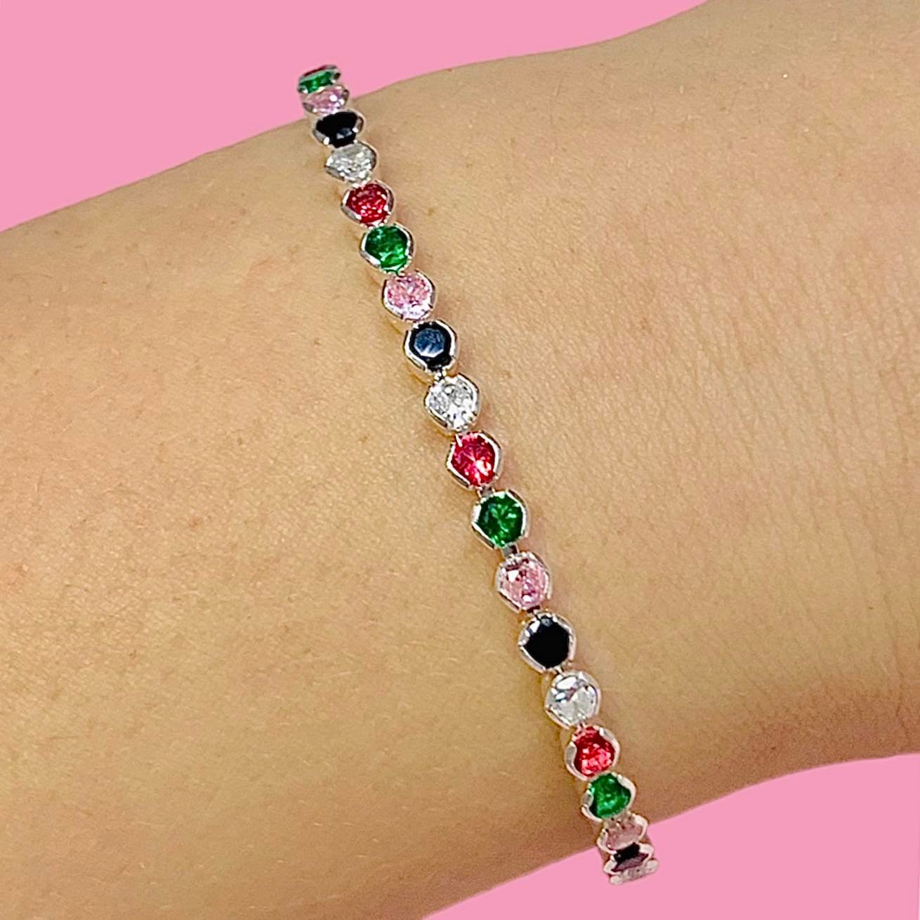 Pulsera Veneziana Luxury Regulable con Cubic Multicolor engarzados de Plata 925
