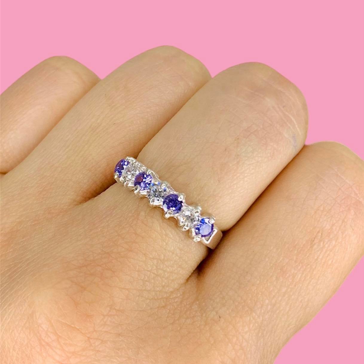 Anillo medio sin fin para compromiso Cubic Violeta y blanco Plata 925