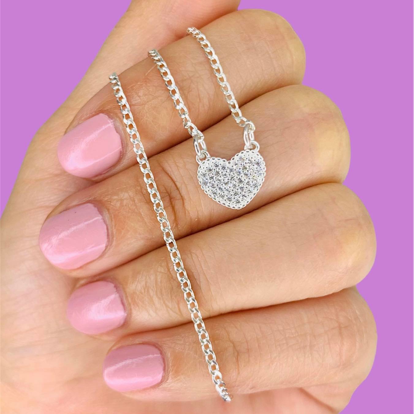 Conjunto Gargantilla con dije Corazon con Piedras blancas micropave de Plata 925