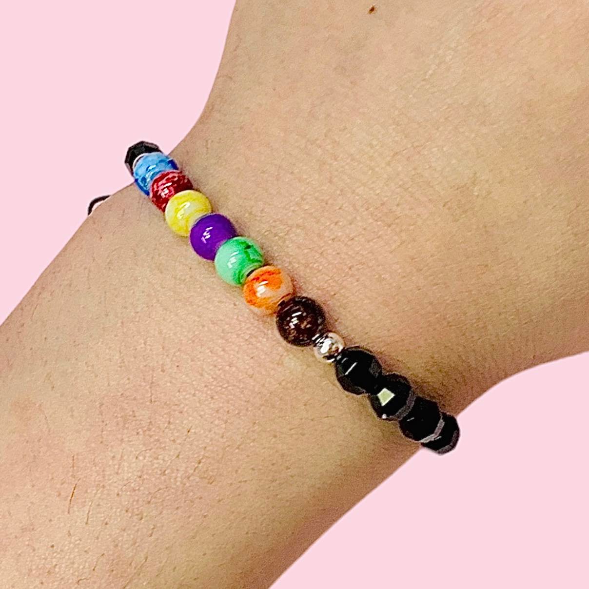 Pulsera Hilo Negro con bolitas 7 chakras para Hombre