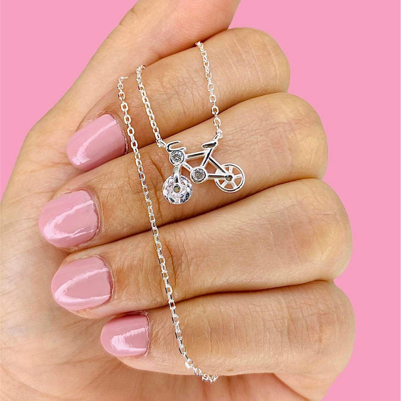 Conjunto Cadena Rolito Dije Bicicleta con cubic blanco de Plata 925