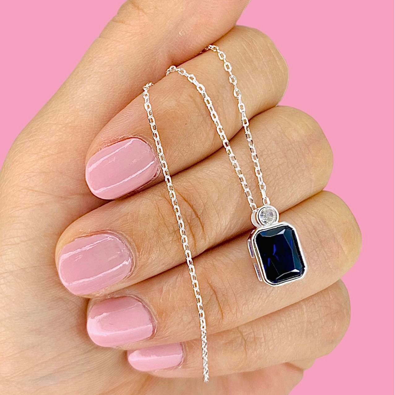 Conjunto Cadena Rolito Dije Rectangulo Azul de Plata 925
