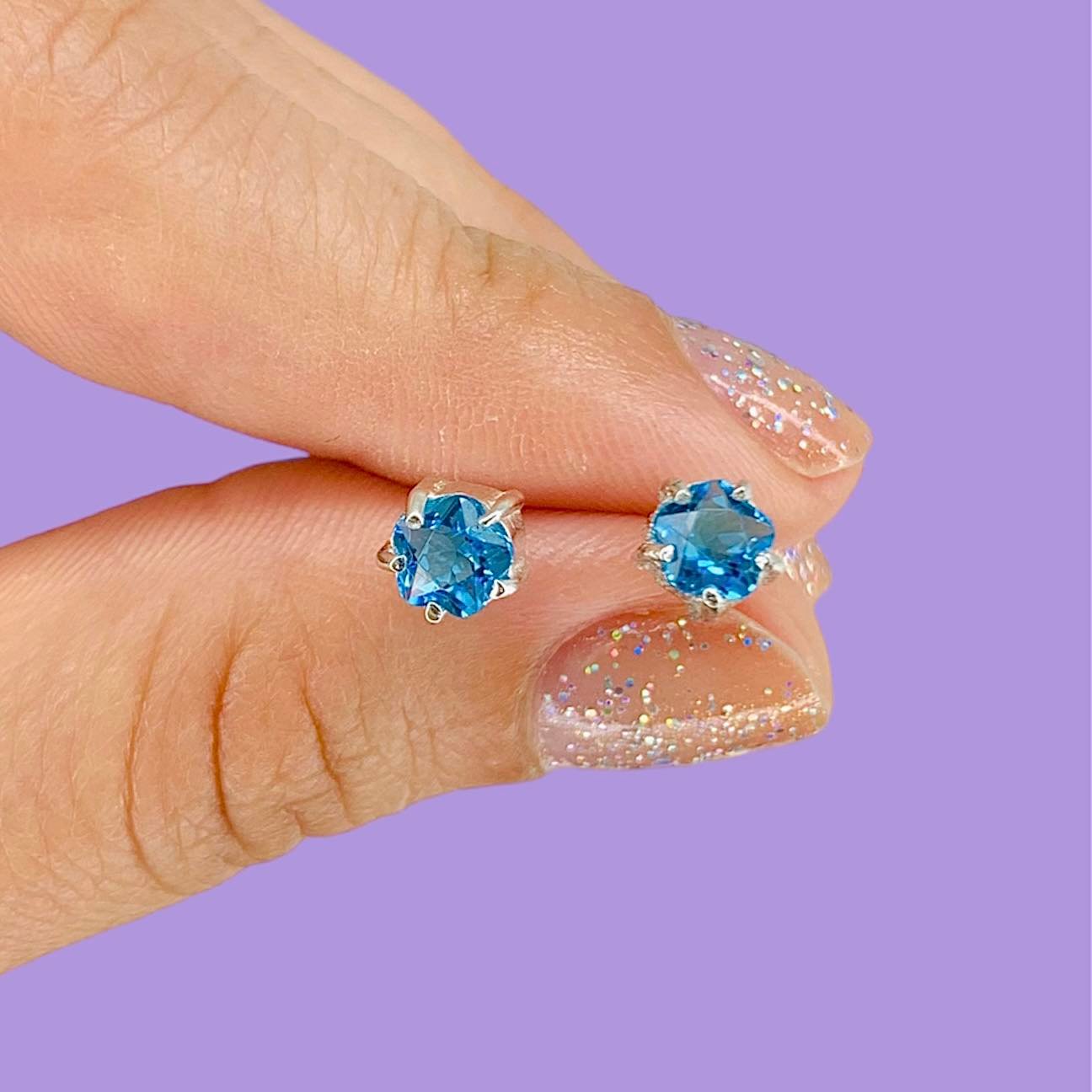 Aros Flor Mini Celeste de Plata 925