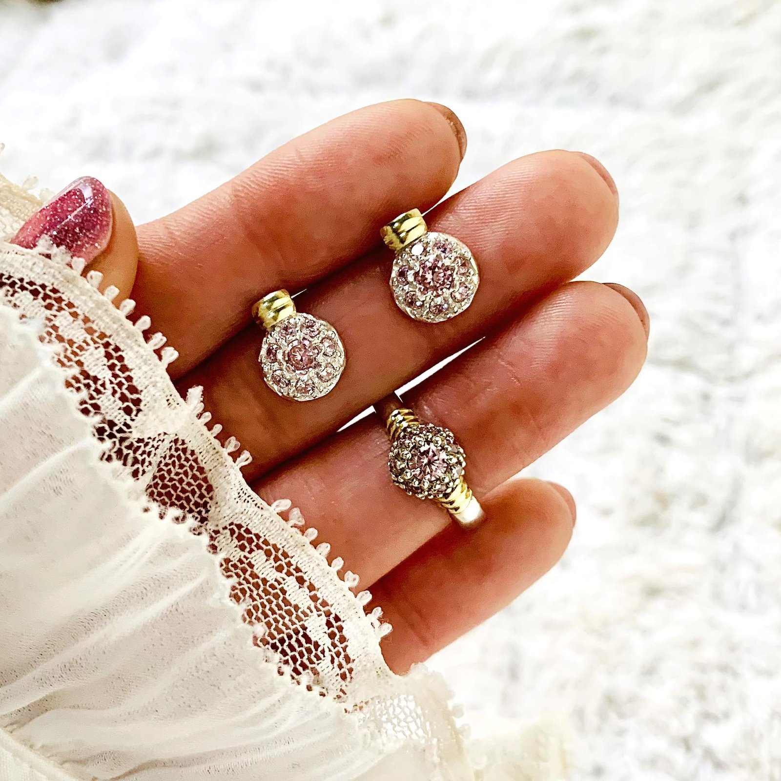Conjunto Anillo y Aros Frutillita Rosa de Plata y Oro