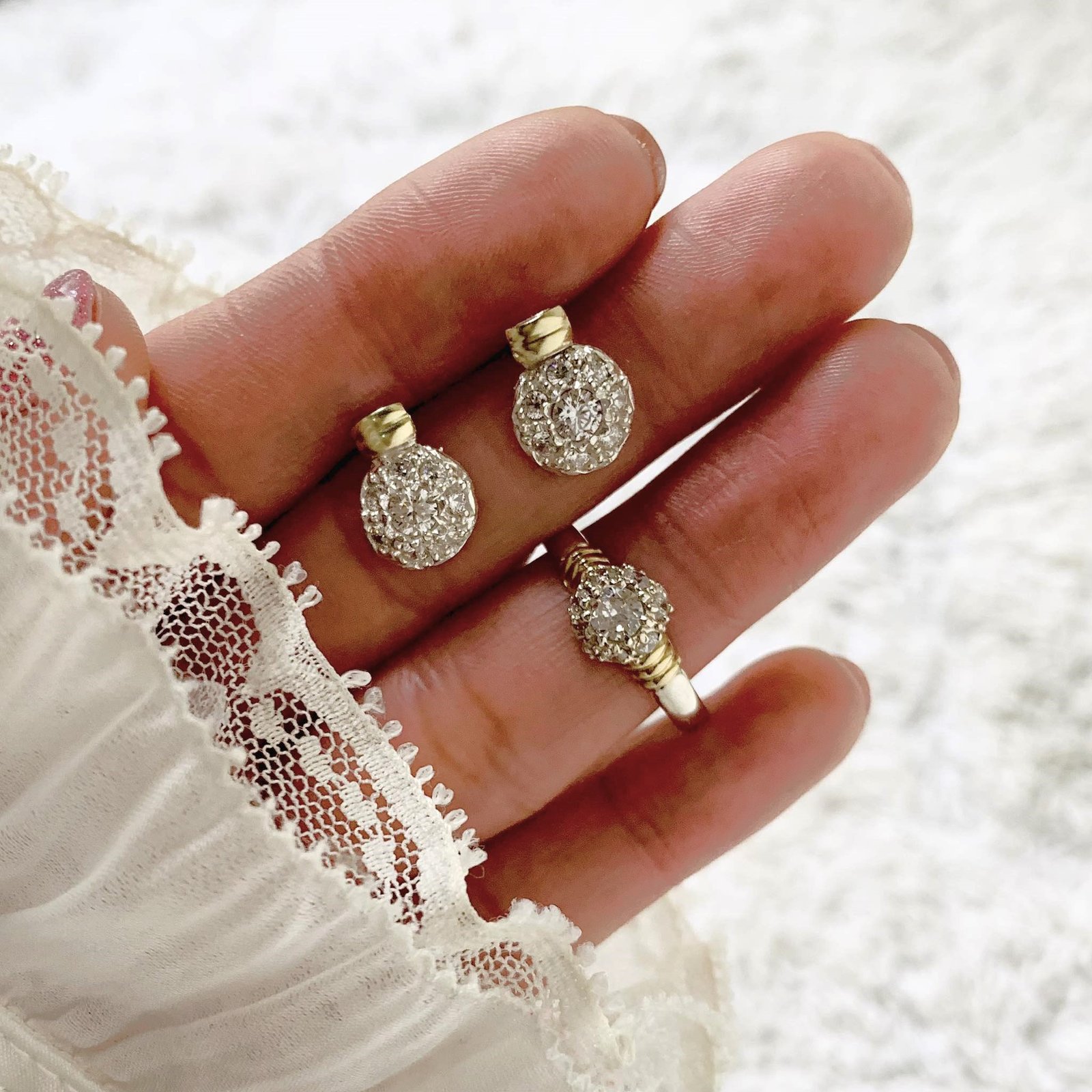 Conjunto Anillo y Aros Frutillita Blanco de Plata y Oro