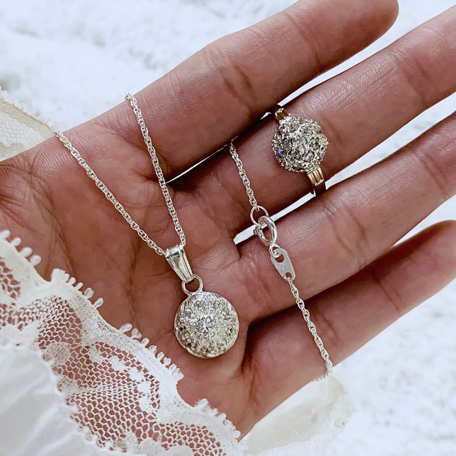 Conjunto Cadena Tourbillon 25 y Dije y anillo Frutillita blanco Plata y Oro