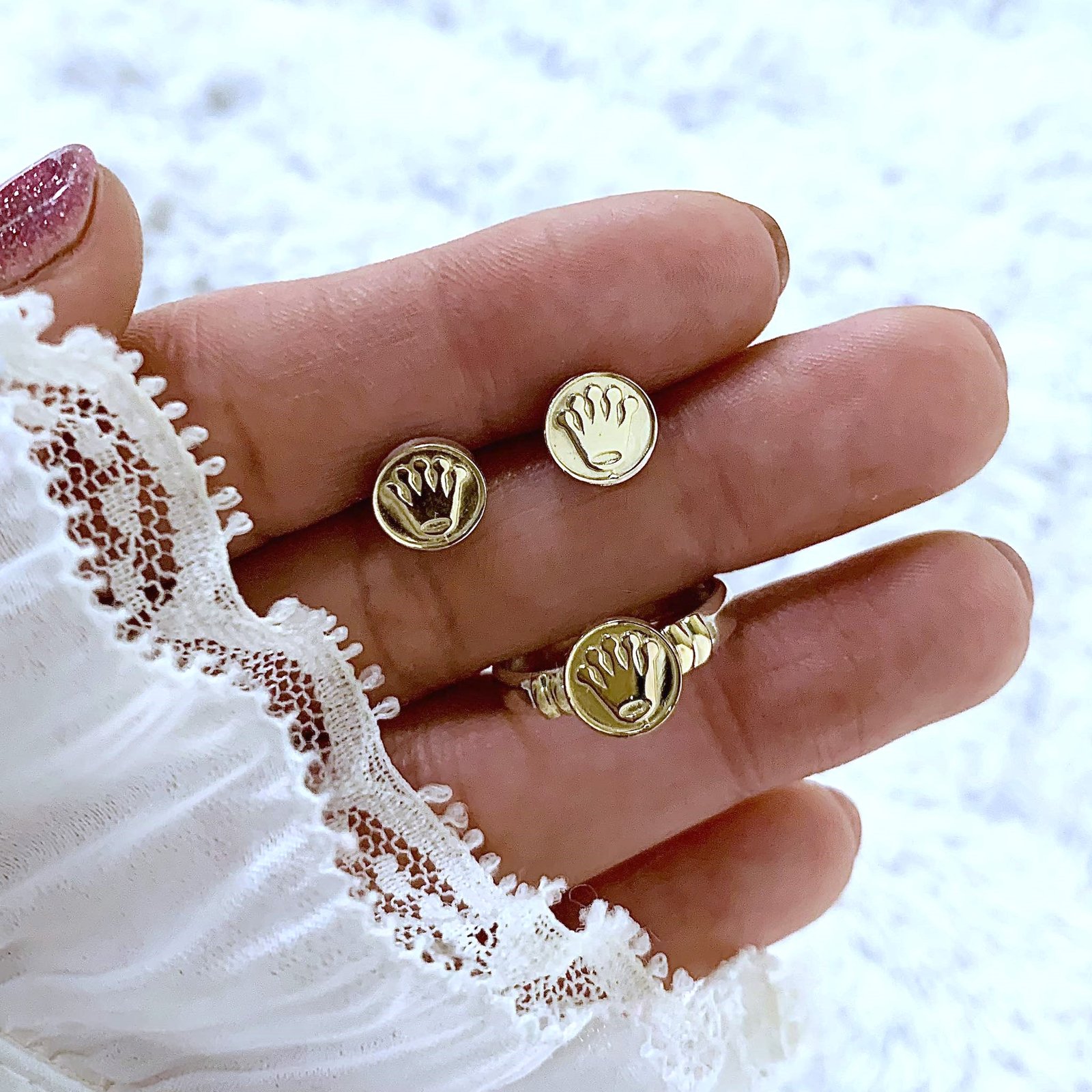 Conjunto Aros y anillo Rolex Corona Redondo de Plata y Oro
