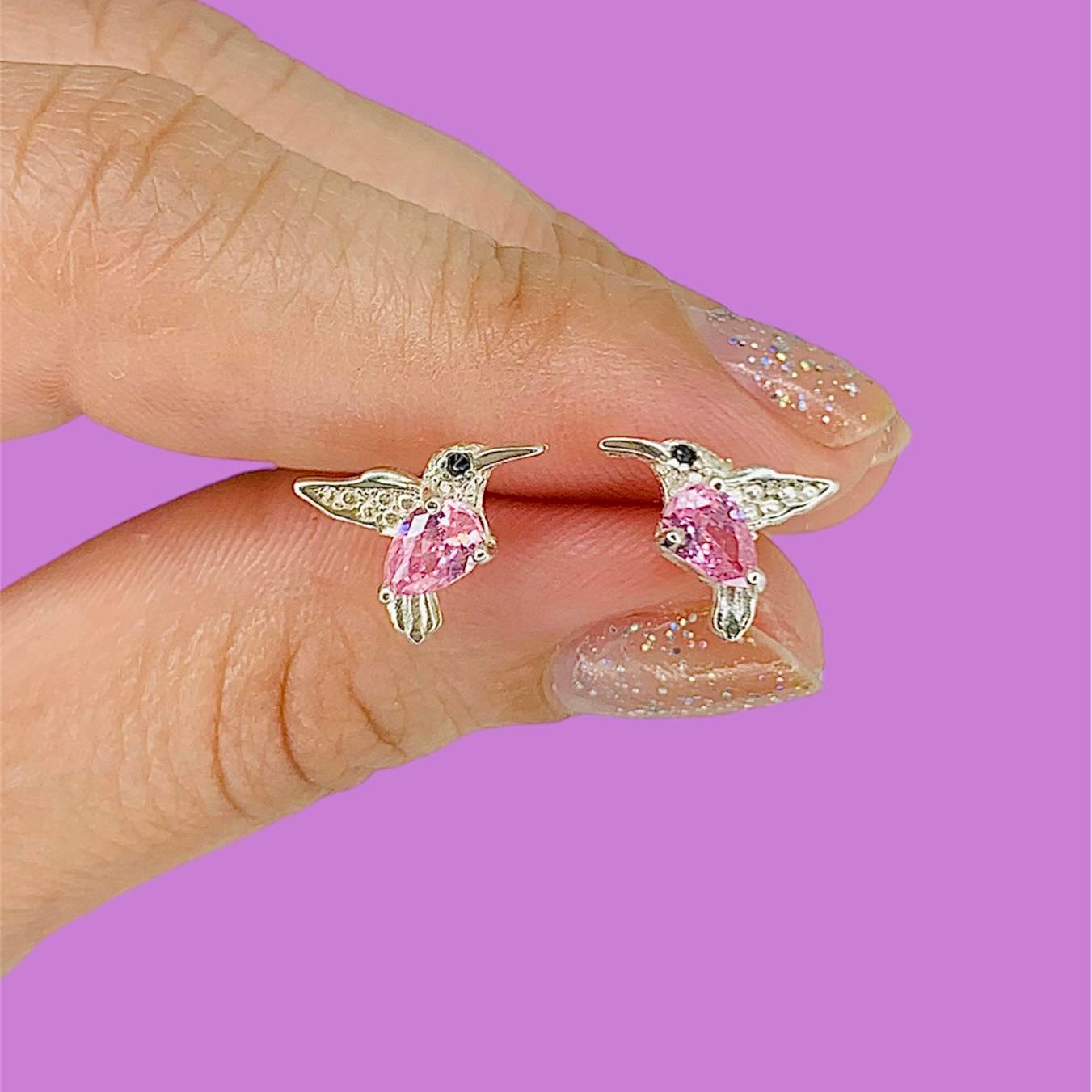 Aros Colibri Mini con piedra gota rosa de Plata 925