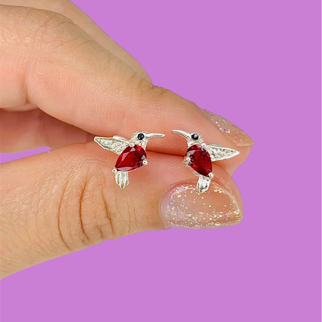 Aros Colibri Mini con piedra gota rojo de Plata 925