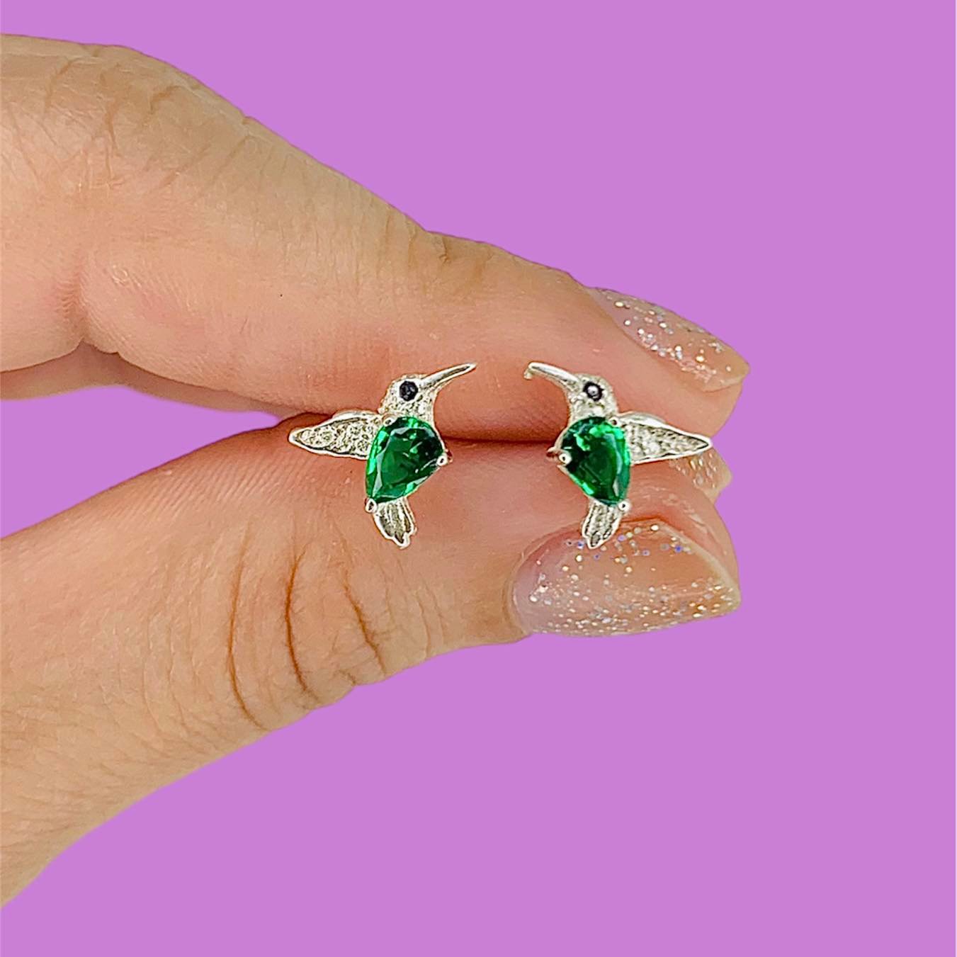 Aros Colibri Mini con piedra gota verde de Plata 925
