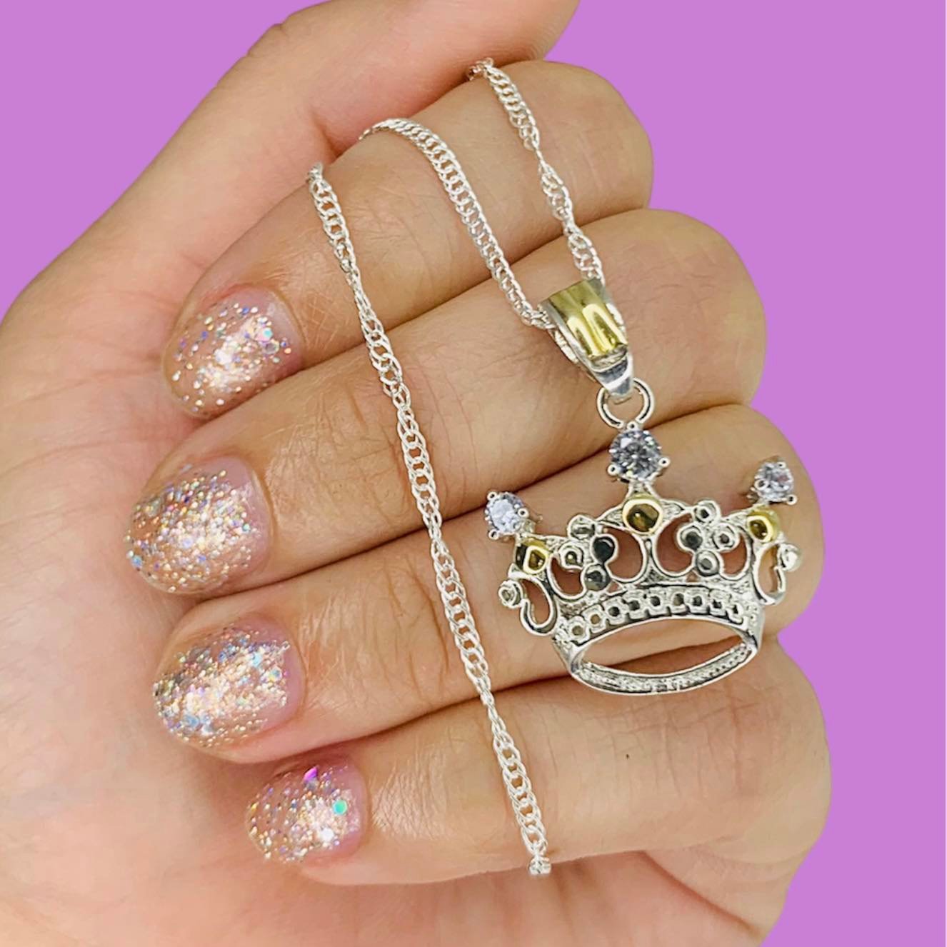 Conjunto Cadena Singapur 30 y dije Corona 30mm cubic Blanco de Plata y Oro