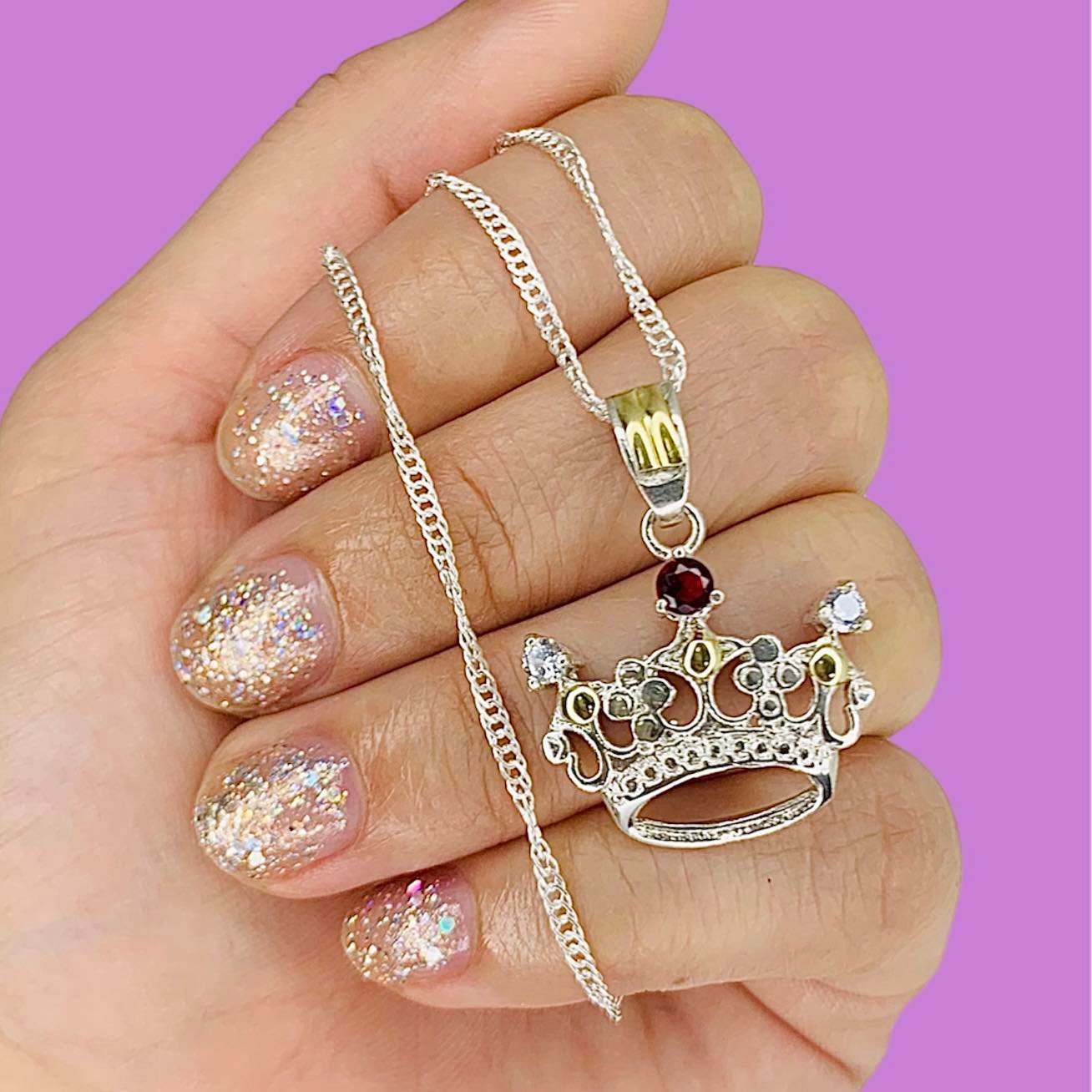 Conjunto Cadena Singapur 30 y dije Corona 30mm cubic Rojo de Plata y Oro