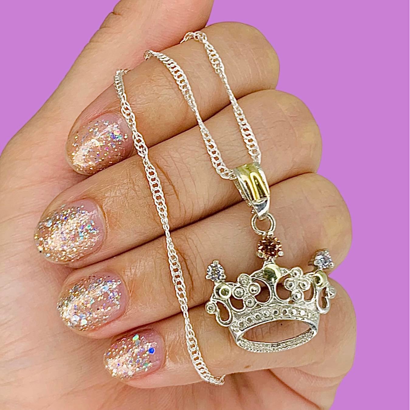 Conjunto Cadena Singapur 30 y dije Corona 30mm cubic Ambar de Plata y Oro