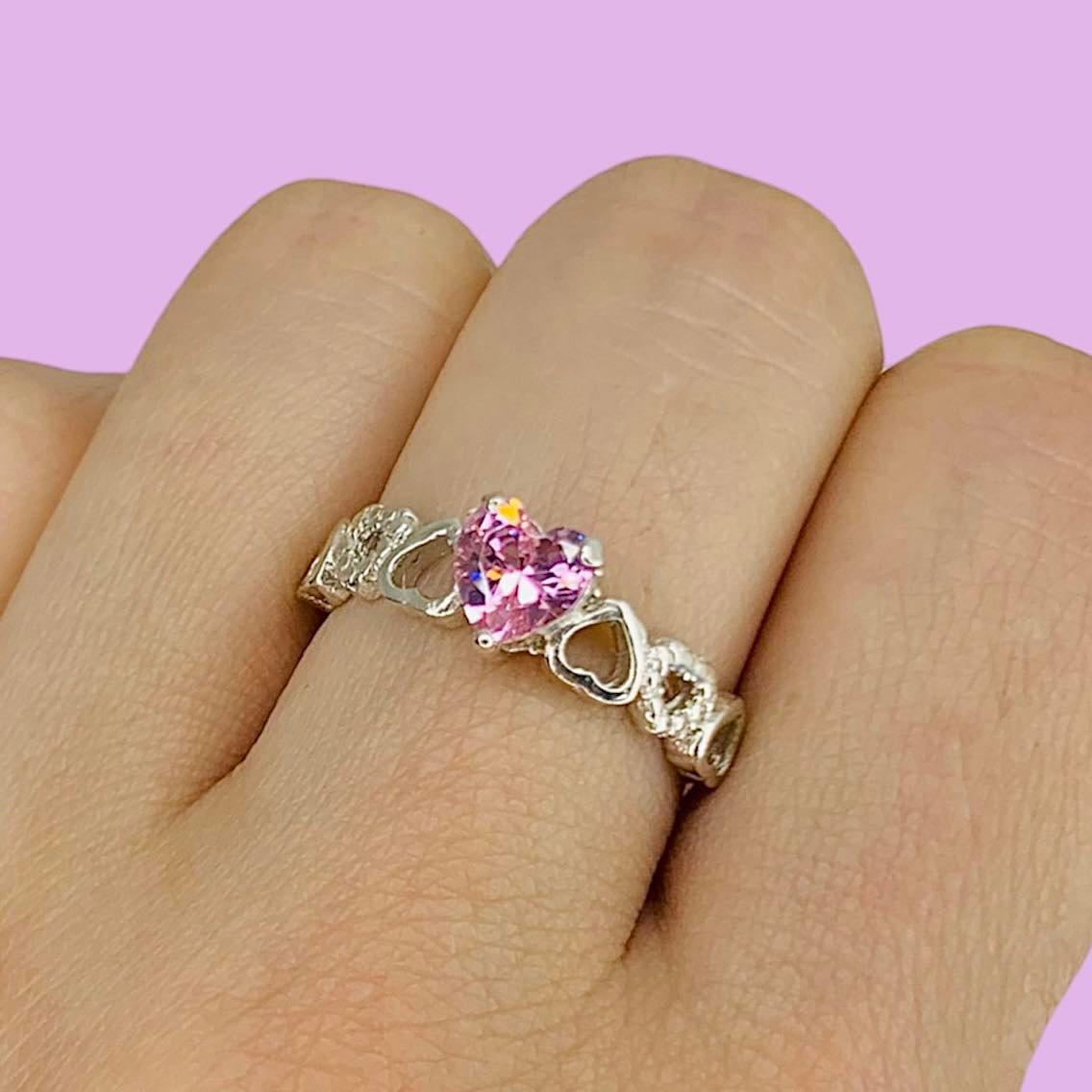 Anillo Enamorados con Cubic Corazon Rosa de Plata 925