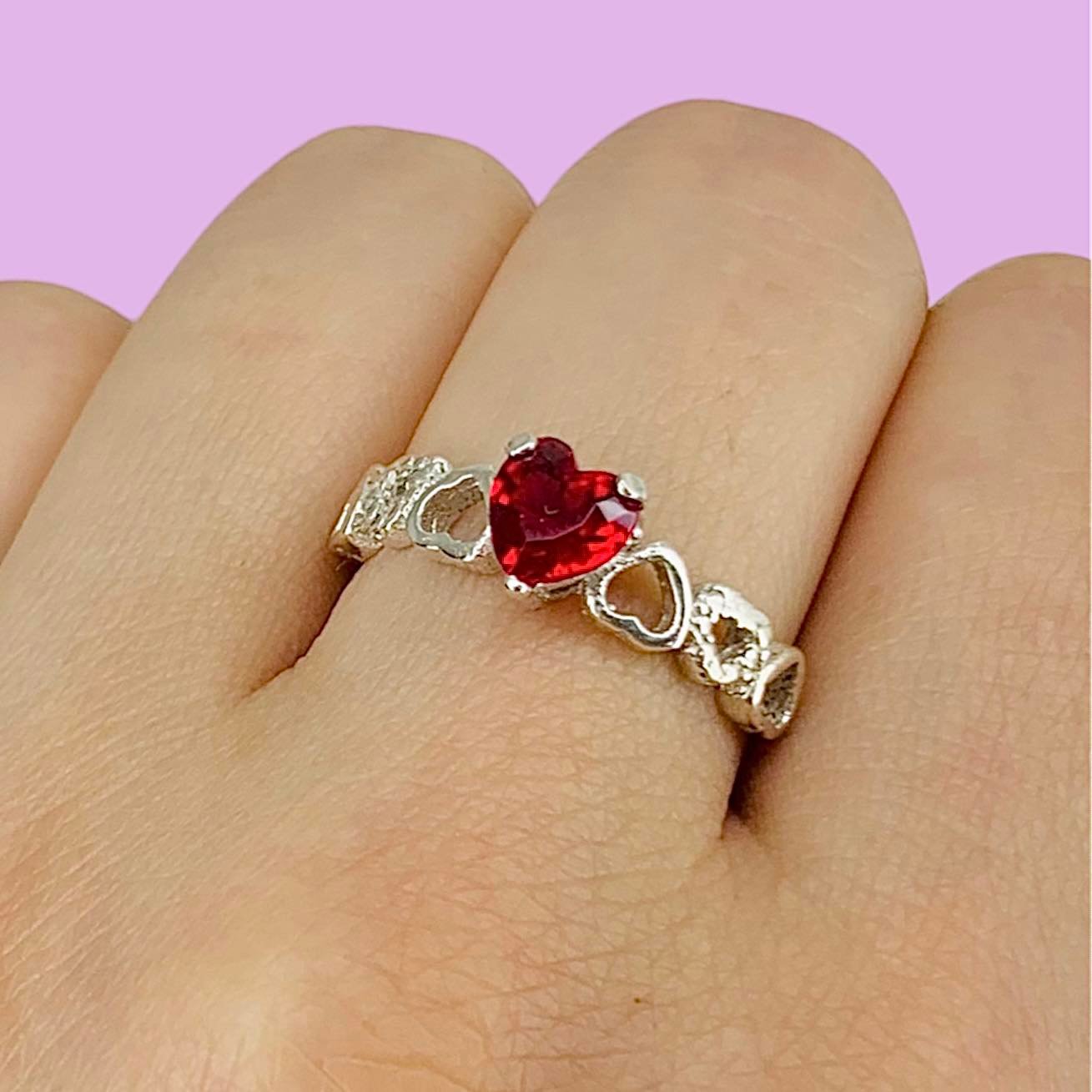 Anillo Enamorados con Cubic Corazon Rojo de Plata 925
