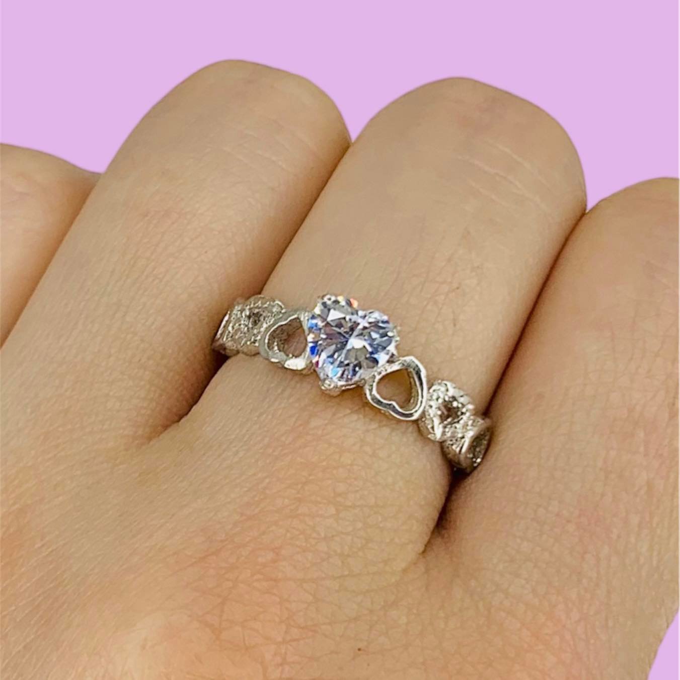 Anillo Enamorados con Cubic Corazon Blanco de Plata 925
