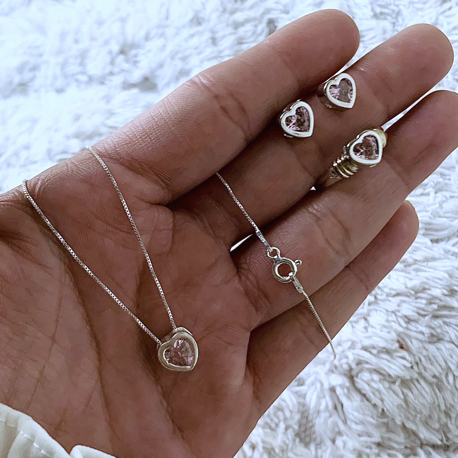 Conjunto cadena veneziana con dije aros anillo susanita corazon Rosa de Plata 925