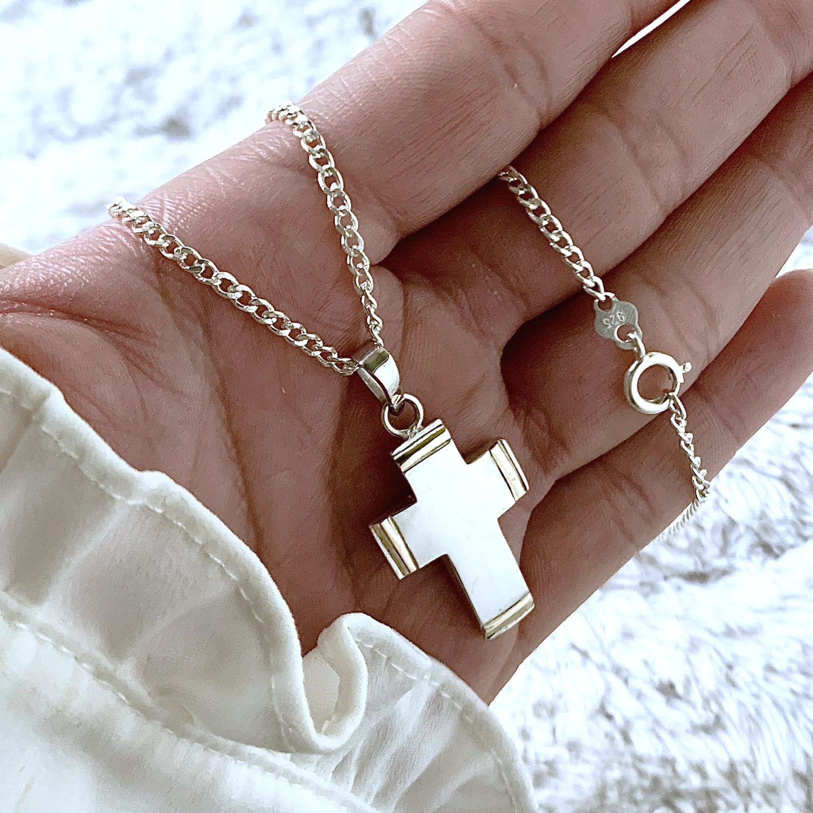 Conjunto cadena groumet 45 con dije Cruz 38mm de Plata y Oro